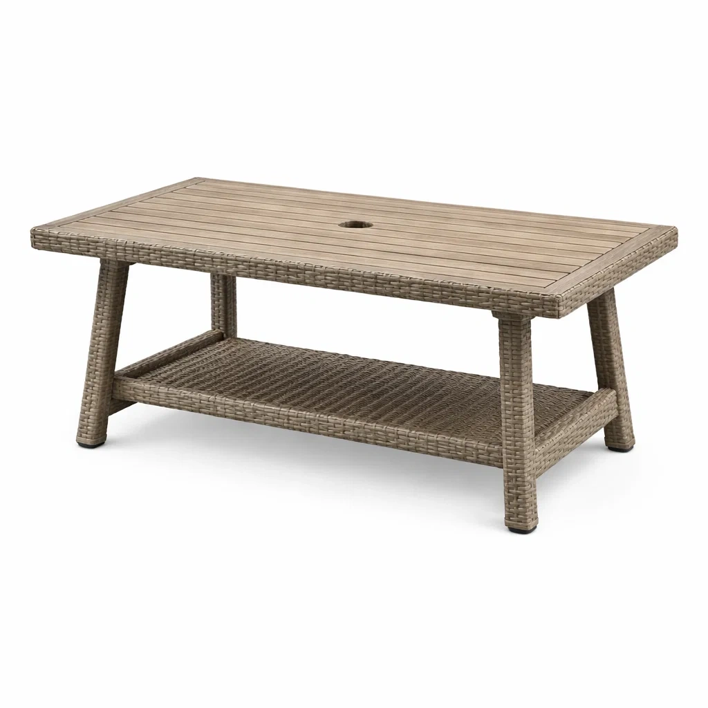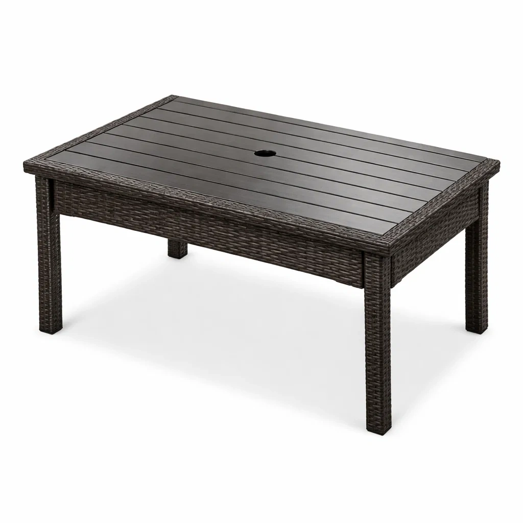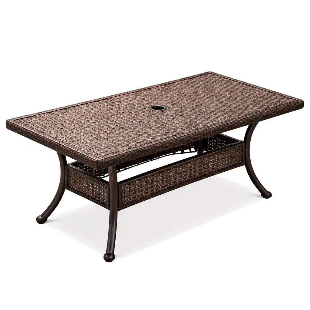 Runder Gartentisch aus Rattan mit Schirmloch