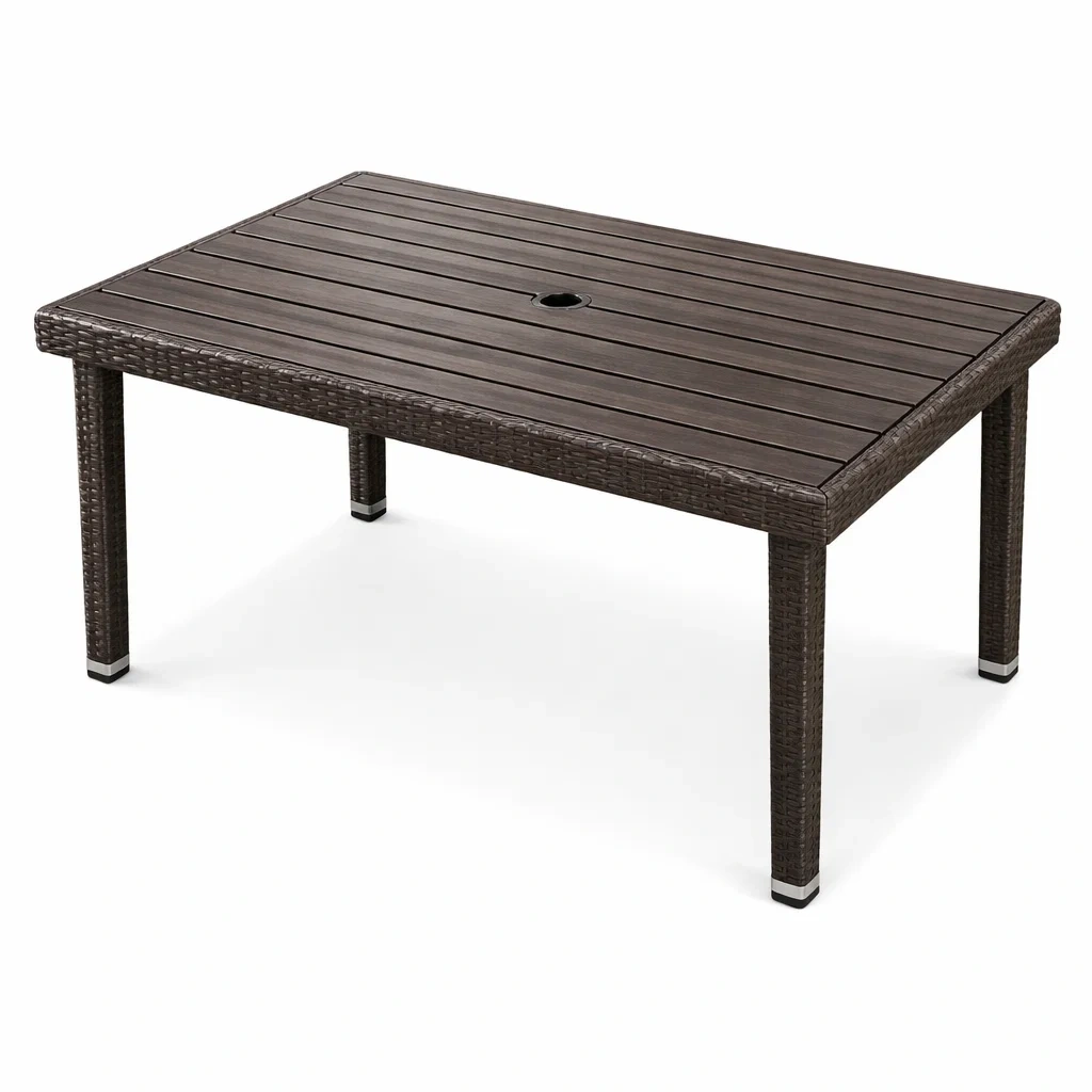 Rechteckiger Gartentisch aus Stahl Polywood und Rattan Braun