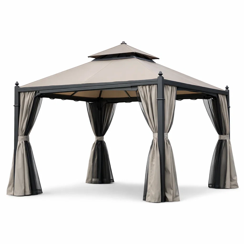 Material: Rahmen aus pulverbeschichtetem Stahl, Dach und Vorhänge aus 100% wasserdichtem Polyestergewebe.