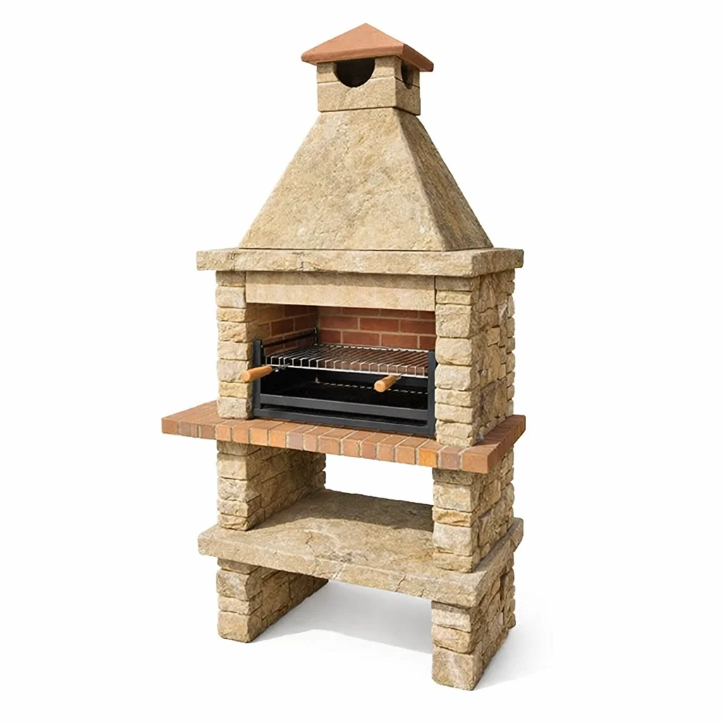 Grillkamin aus Naturstein mit Edelstahlrost und Ziegelverkleidung